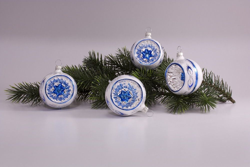 4 Kugeln mit 3fach-Reflex 6cm Eisweiß nordic blau