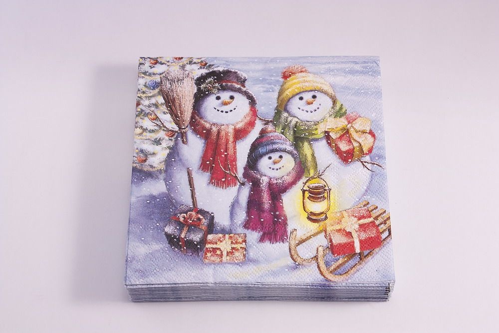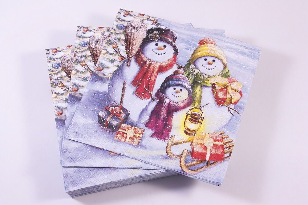 Weihnachtsservietten im Großpack "Schneemann" 20 Stück bedruckt 33cm x 33cm