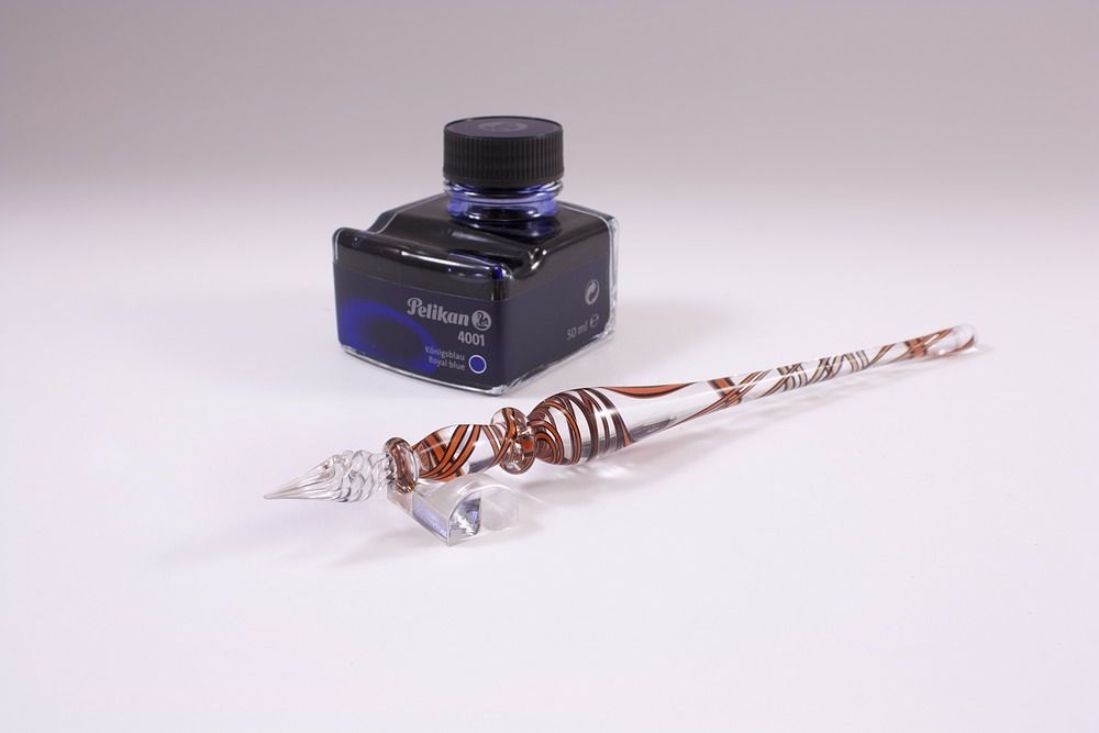 Unsere handgefertigten Glasfedern können Sie hier im 4-teiligen Set bestellen. Im Set enthalten sind ein Glasfederhalter der Premium-Klasse, ein edler Geschenkkarton, ein praktisches Ablagebänkchen sowie 50 ml Tinte im Original Tintenfass von Pelikan. Das perfekte Geschenk für Liebhaber der Kalligrafie.